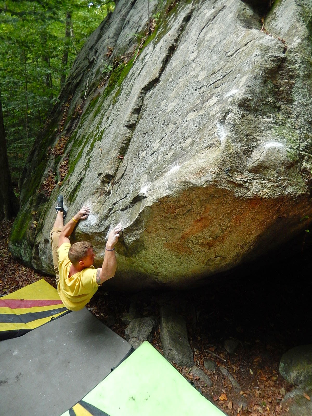The session was short and sweet but the conditions were finally conducive for hard bouldering and the energy levels were high in the forest. I had some obligations in the morning which delayed my arrival at my favorite Adirondack bouldering location; Nine Corners Lake. When I arrived around noon, there were a handful of guys who had already been there sampling some of the areas classics.